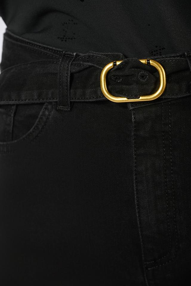 Чёрные джинсы клеш от Twin Set — стильная и комфортная модель из хлопка с добавлением эластана. Классический крой и пояс с золотой пряжкой подчеркнут вашу индивидуальность. Состав: хлопок 98%, эластан 2%