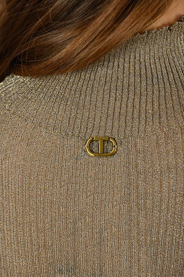 Джемпер Twin Set золотистого цвета с высоким воротом – стильная и элегантная модель, выполненная из мягкого трикотажа с деликатным блеском. Идеально подходит для создания изысканных образов. Состав: вискоза 78%, полиамид 22%