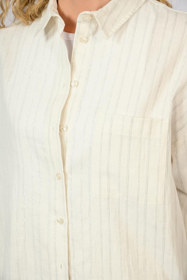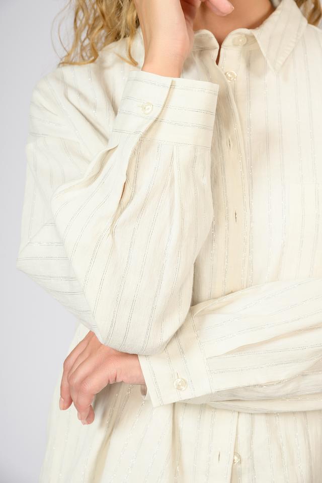 Бежевая блуза Twin Set в вертикальную полоску – стильное и лёгкое решение для создания повседневного образа. Модель выполнена из смесового состава с добавлением хлопка и льна, что обеспечивает комфорт и воздухопроницаемость. Состав: хлопок 39%, лен 37%, полиамид 11%, полиэстер 10%, вискоза 3%