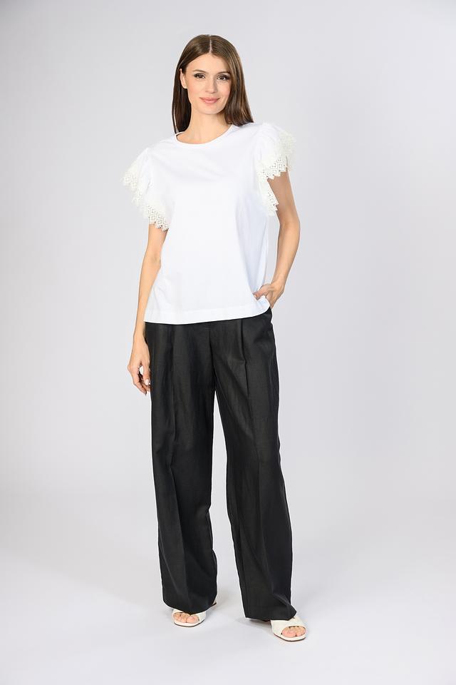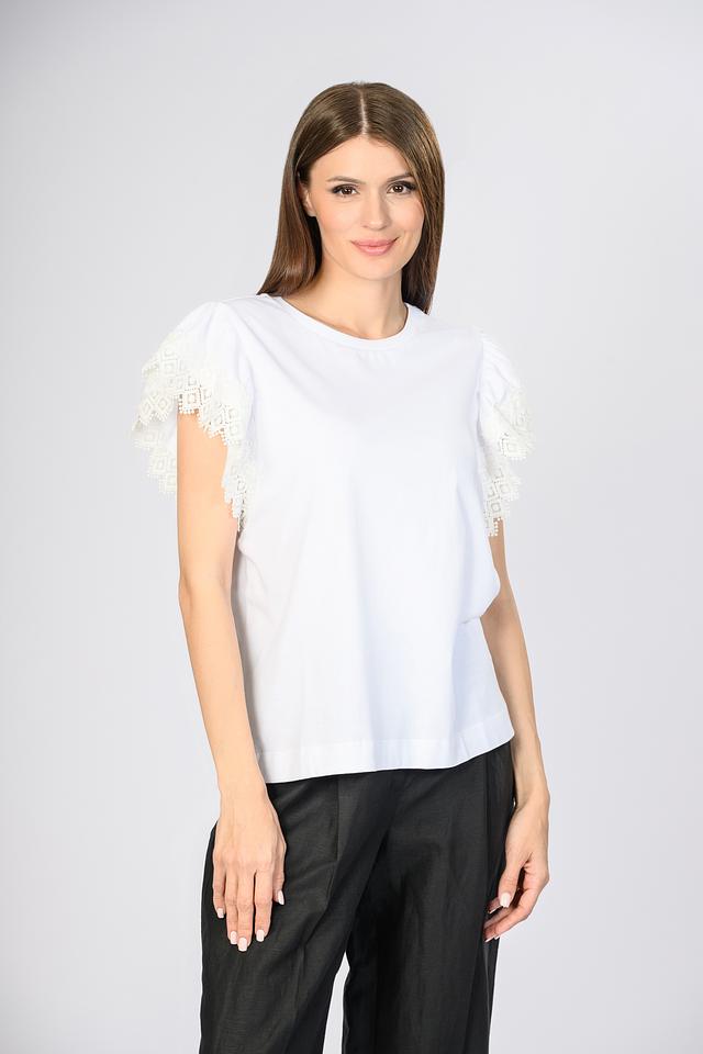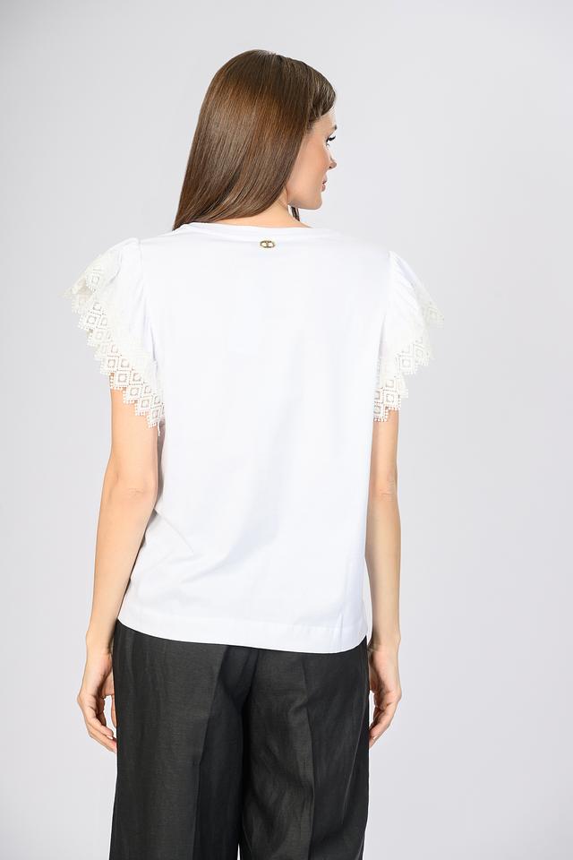 Белая блуза Twin Set с изящными кружевными рукавами станет стильным дополнением к вашему гардеробу. Модель выполнена из качественного хлопка, обеспечивающего комфорт в носке. Состав: хлопок 100%