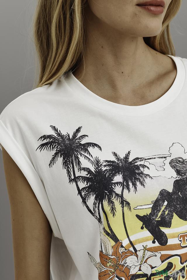 Особенностью данной модели является эффектный принт "Attitude" с изображением пальм, солнца и силуэта на скейтборде. Яркие цвета и динамичный рисунок делают эту футболку запоминающейся и стильной.