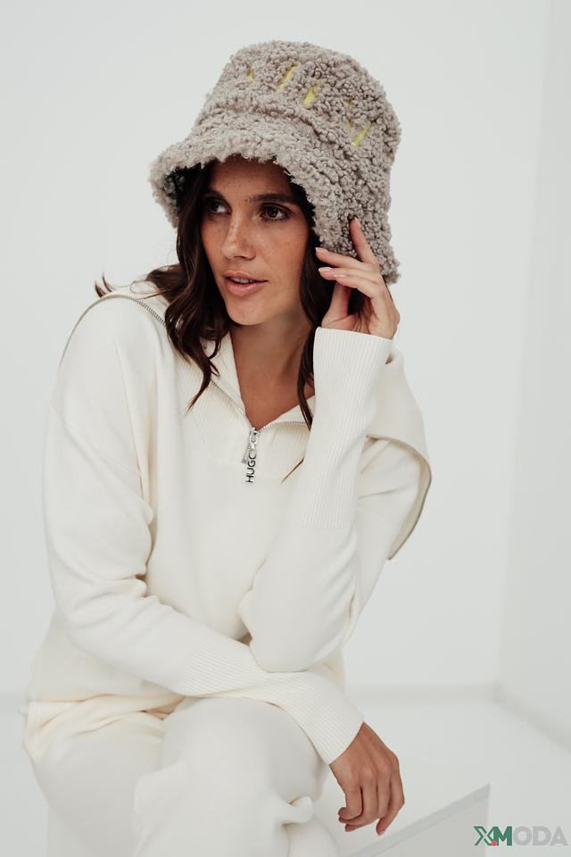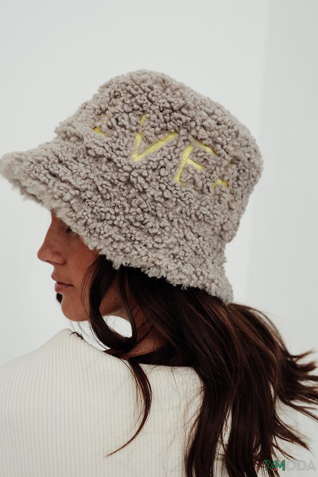 Особенностью данной модели является её фактурная поверхность, напоминающая мягкую шерсть, и декоративная вышивка в виде надписи. Шляпа имеет удобную форму, которая хорошо держит форму и обеспечивает комфортную посадку.