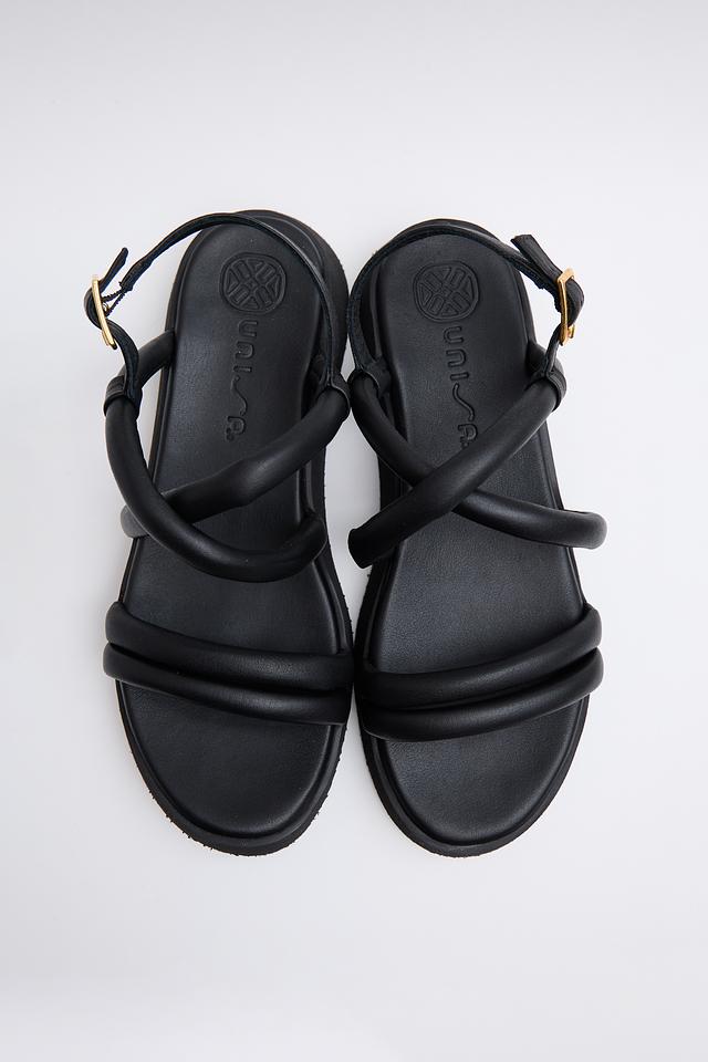 Чёрные сандалии Unisa – стильная и удобная обувь для летнего сезона. Модель выполнена из натуральной кожи, имеет широкие перемычки и платформу, обеспечивающую комфорт при ходьбе. Состав: кожа 100%, Состав_подкладка кожа 100%, Состав_низ термополиуретан 100%