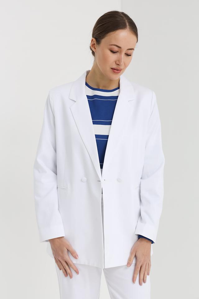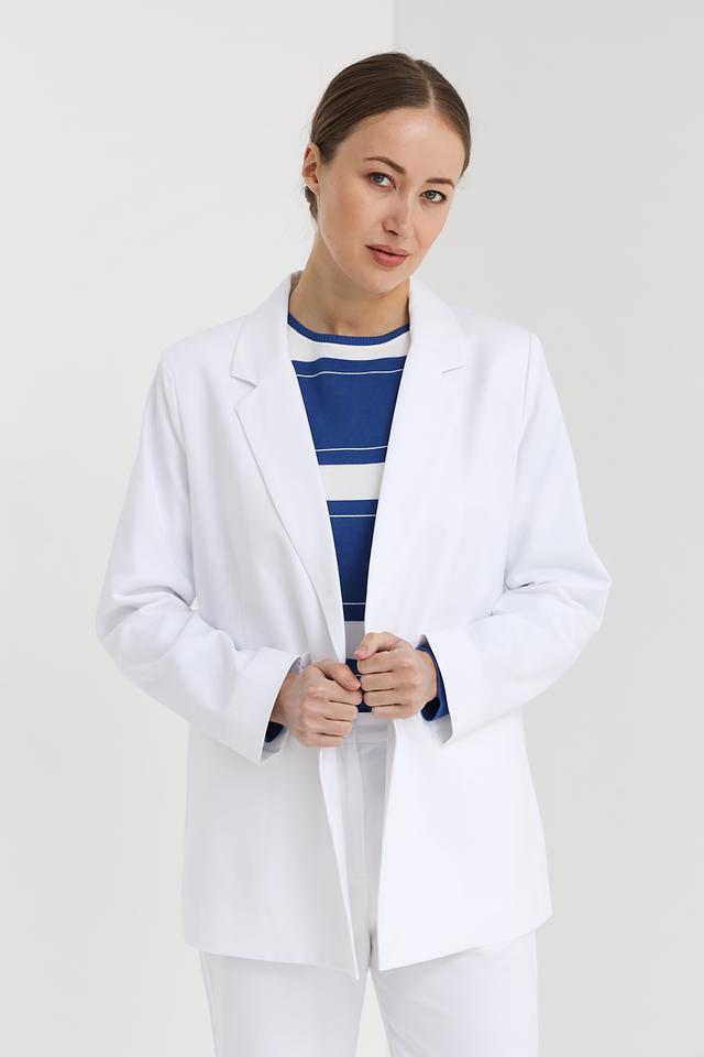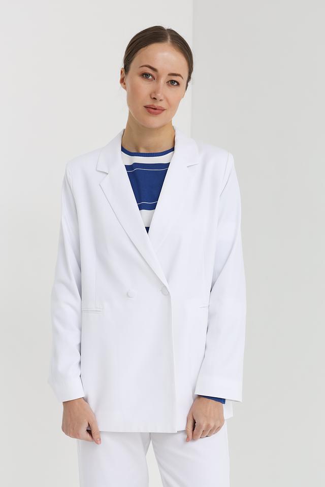 Белый жакет UNQ прямого кроя станет отличным дополнением к вашему гардеробу. Классический дизайн и удобный крой делают его универсальным выбором для создания стильных образов. Состав: хлопок 51%, лиоцел 49%