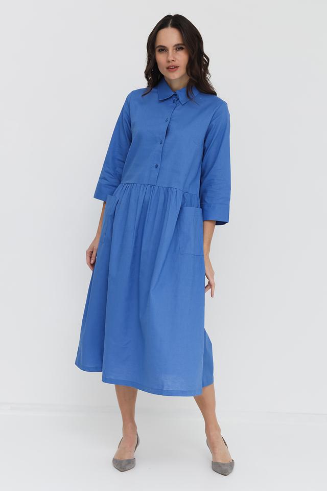 Голубое платье рубашка от UNQ – стильное и комфортное решение для повседневного образа. Платье выполнено из натурального смесового материала, имеет рубашечный крой с застежкой на пуговицы и боковые карманы. Состав: лен 55%, хлопок 45%