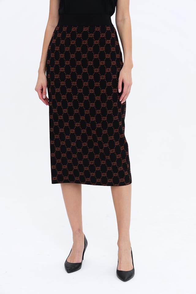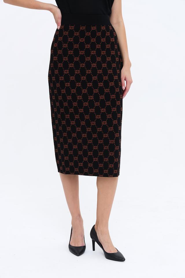 Юбка от UNQ черного цвета с повторяющимся логотипом – стильное и лаконичное решение для создания элегантного образа. Прямой крой и эластичный материал обеспечивают комфортную посадку. Состав: вискоза 72%, полиэстер 28%