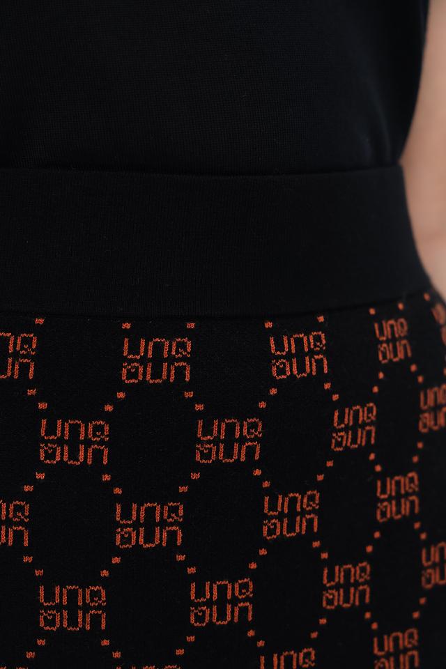 Эта юбка от UNQ станет отличным дополнением к вашему гардеробу. Она выполнена в черном цвете и украшена повторяющимся логотипом бренда по всей поверхности, что придает ей узнаваемый и стильный вид.