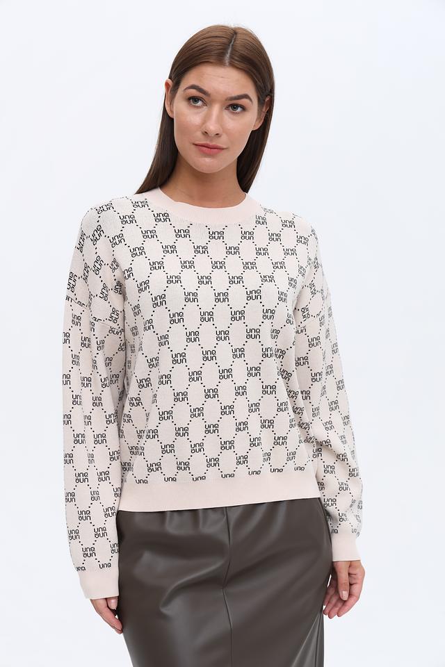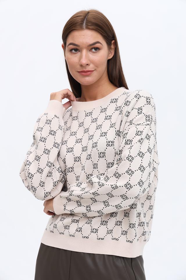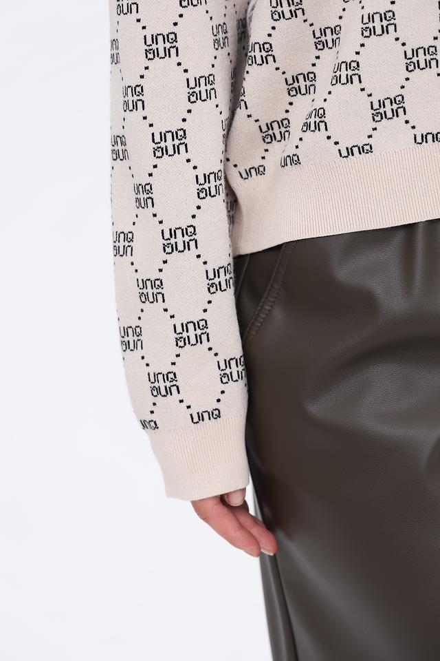 Этот пуловер от UNQ станет отличным дополнением к вашему гардеробу. Он выполнен в нежном бежевом цвете и украшен повторяющимся логотипом бренда по всей поверхности, что придает ему узнаваемый и современный вид.