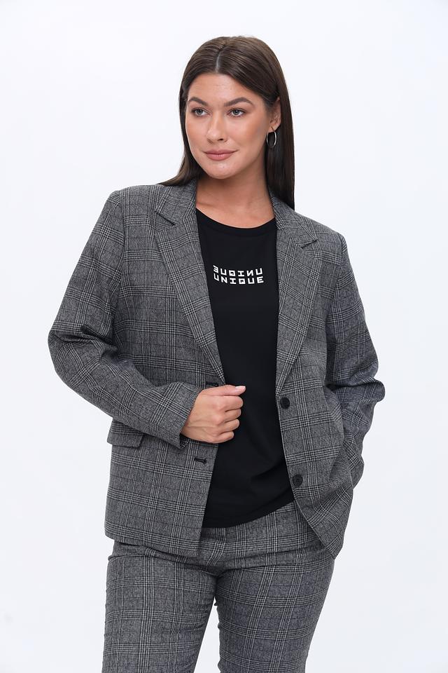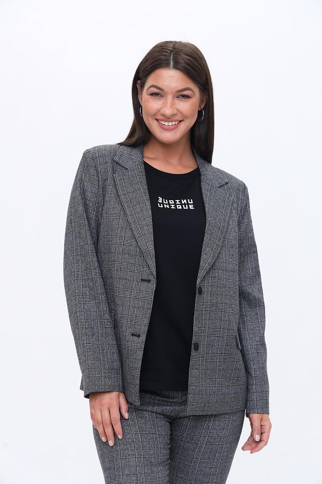 Жакет UNQ женский серого цвета в классическую клетку – стильное и универсальное решение для создания делового или повседневного образа. Прямой крой и лацканы придают жакету элегантный вид, а застежка на пуговицы обеспечивает удобство носки. Состав: полиэстер 98%, эластан 2%