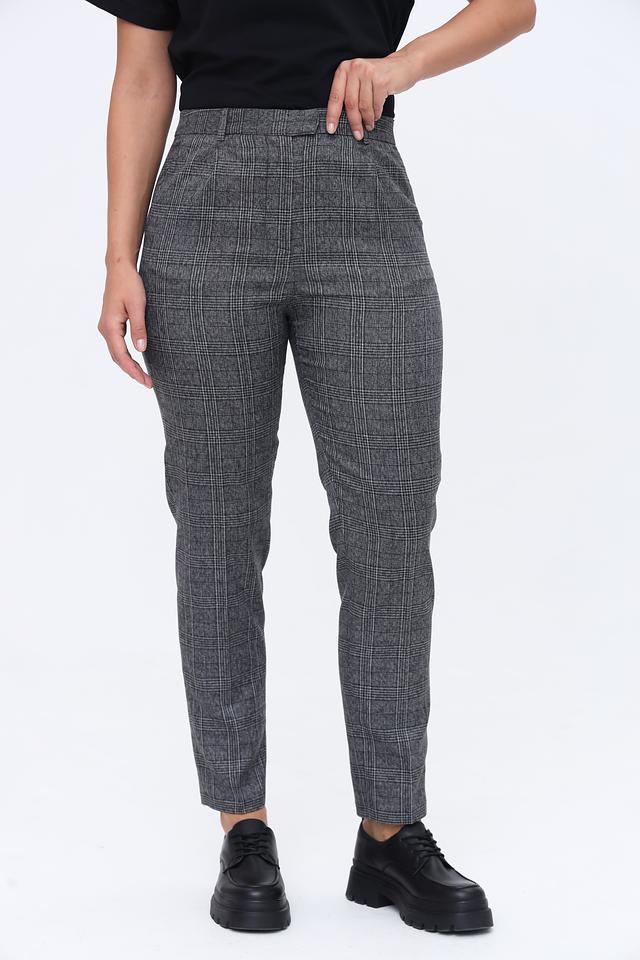 Стильные брюки UNQ серого цвета в классическую клетку станут отличным дополнением к вашему гардеробу. Модель выполнена из полиэстера с добавлением эластана, что обеспечивает комфорт и удобство в носке. Состав: полиэстер 98%, эластан 2%