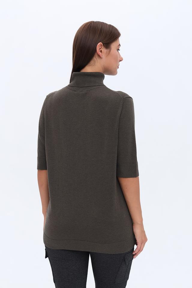 Женский пуловер UNQ оливкового цвета – это стильная и комфортная модель с коротким рукавом и высоким воротом. Изготовлен из мягкой смеси шерсти, полиэстера и полиакрила с добавлением кашемира для дополнительного комфорта. Состав: полиэстер 35%, шерсть 30%, полиакрил 30%, кашемир 5%
