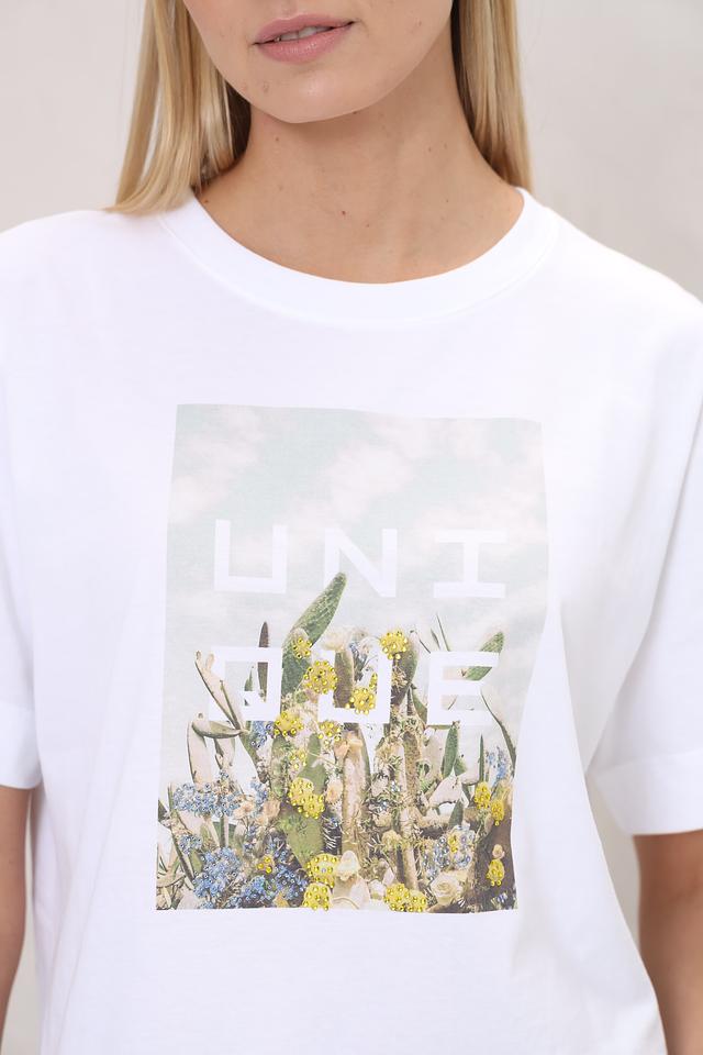 Белая футболка UNQ с ярким цветочным принтом – стильная и комфортная базовая вещь. Изготовлена из 100% хлопка, обеспечивающего приятные ощущения на коже и свободу движений. Состав: хлопок 100%