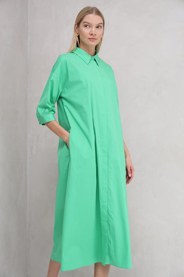 Классический воротник и застёжка на пуговицы создают лаконичный и элегантный вид. Платье идеально подходит для создания повседневных образов, а также для более формальных мероприятий в сочетании с подходящими аксессуарами.