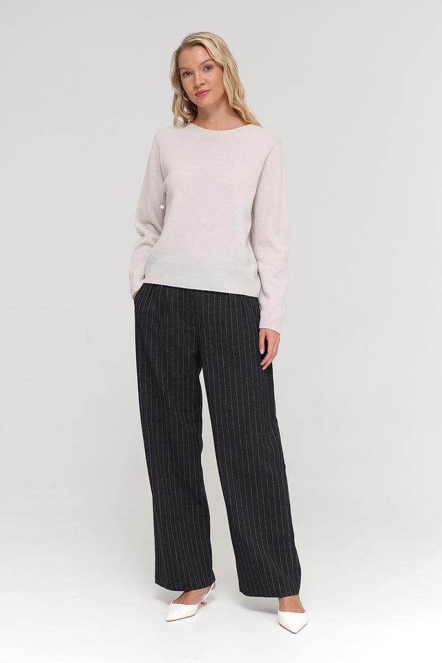 Модель имеет стандартную посадку по талии и широкие брючины, что делает их универсальными для различных типов фигур. Брюки оснащены боковыми карманами. Состав ткани обеспечивает комфорт при носке и сохраняет форму изделия.
