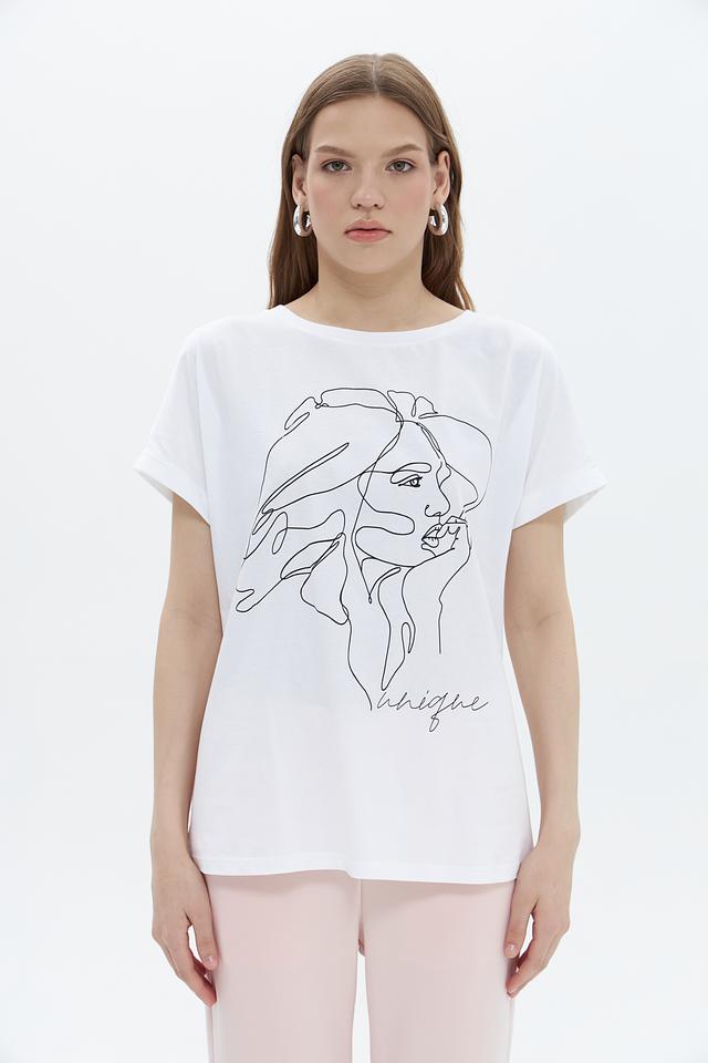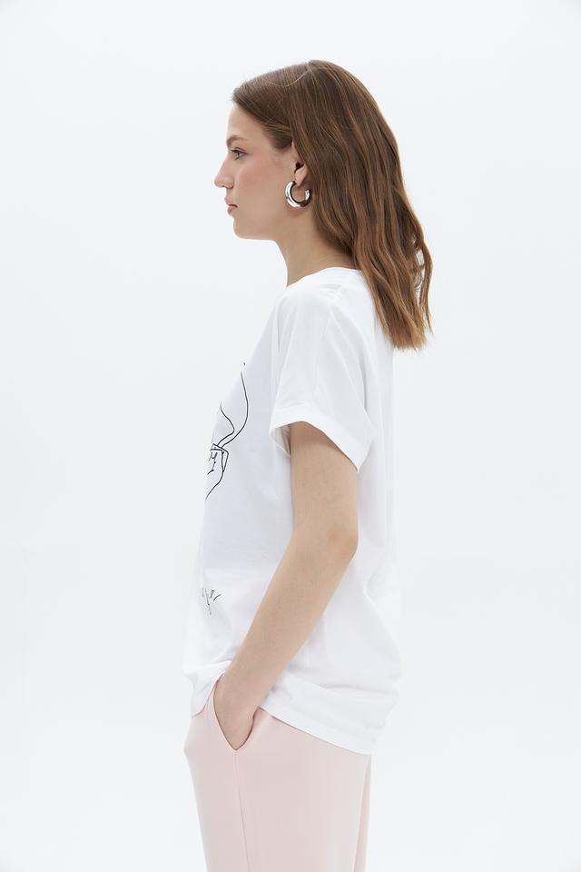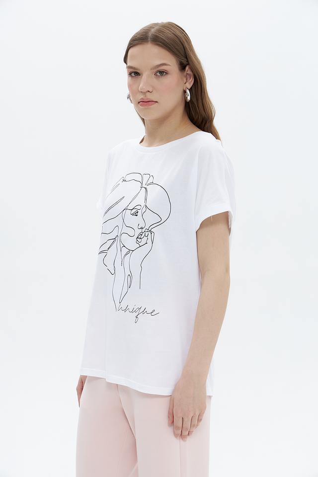 Белая футболка UNQ с оригинальным принтом в виде графичного изображения лица. Изготовлена из 100% хлопка, обеспечивающего комфорт в носке. Стильный и лаконичный дизайн делает эту футболку отличным выбором для повседневного образа. Состав: хлопок 100%