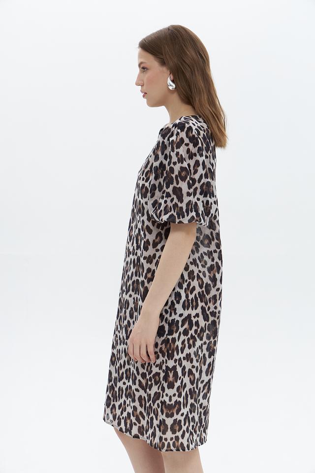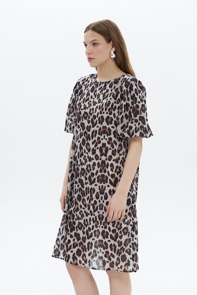 Это платье от UNQ выполнено в ярком леопардовом принте, что делает его акцентным элементом вашего гардероба. Модель имеет прямой крой, короткие рукава и круглый вырез горловины.