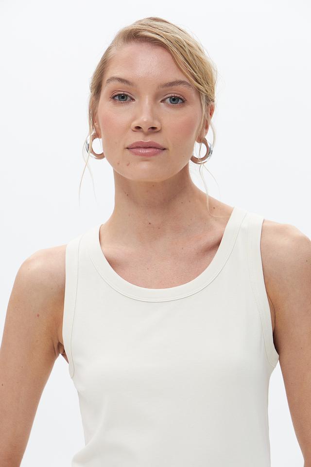 Эта майка-топ от UNQ станет незаменимой частью вашего базового гардероба. Выполненная в нежном бежевом цвете, она легко сочетается с различными элементами одежды, позволяя создавать стильные и комфортные образы.