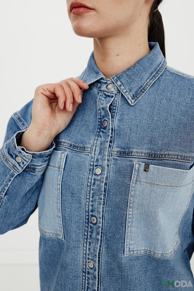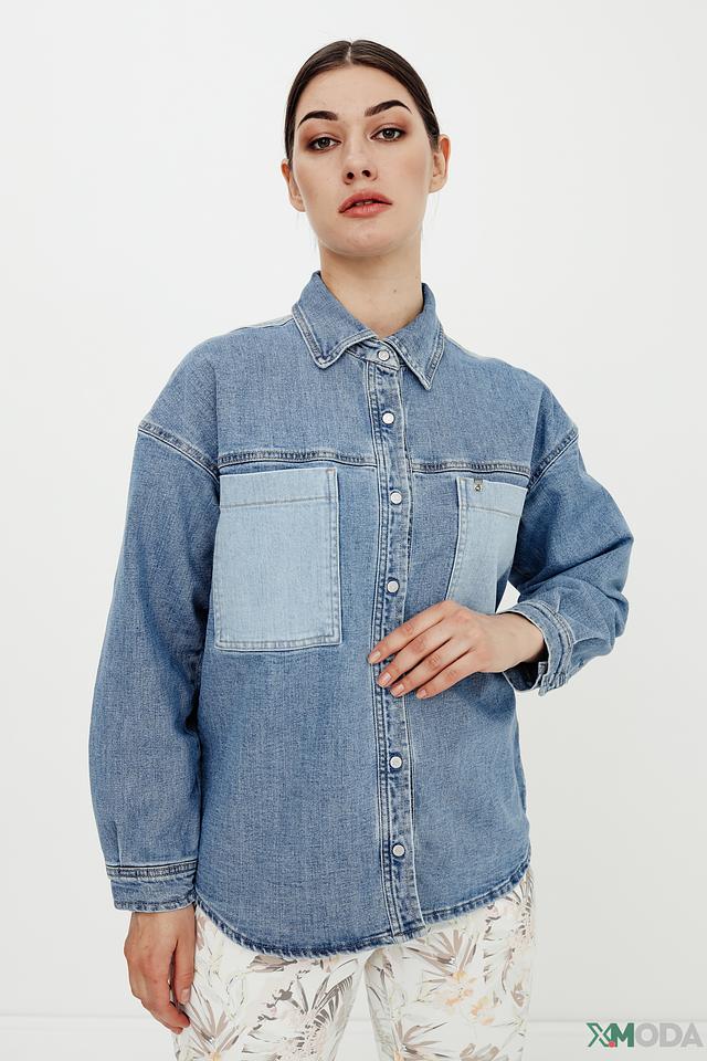 Рубашка UNQ джинсовая с карманами голубая