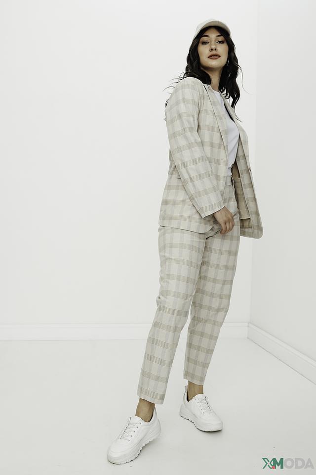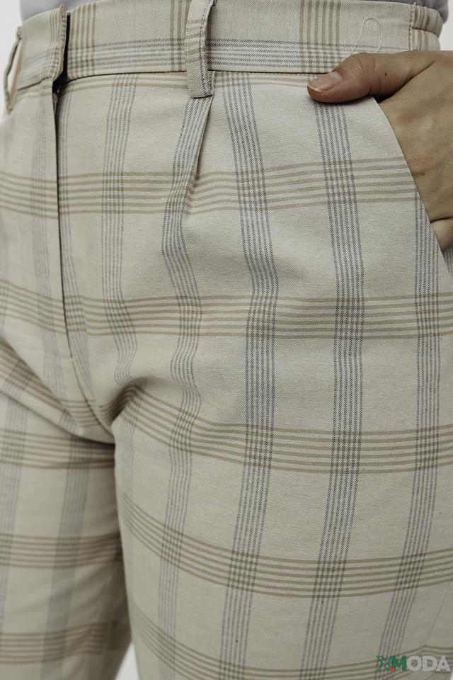 Женские брюки UNQ бежевого цвета в классическую клетку – стильное и комфортное решение для создания повседневных образов. Модель выполнена из хлопка с добавлением эластана, обеспечивающего удобную посадку. Состав: хлопок 97%, эластан 3%