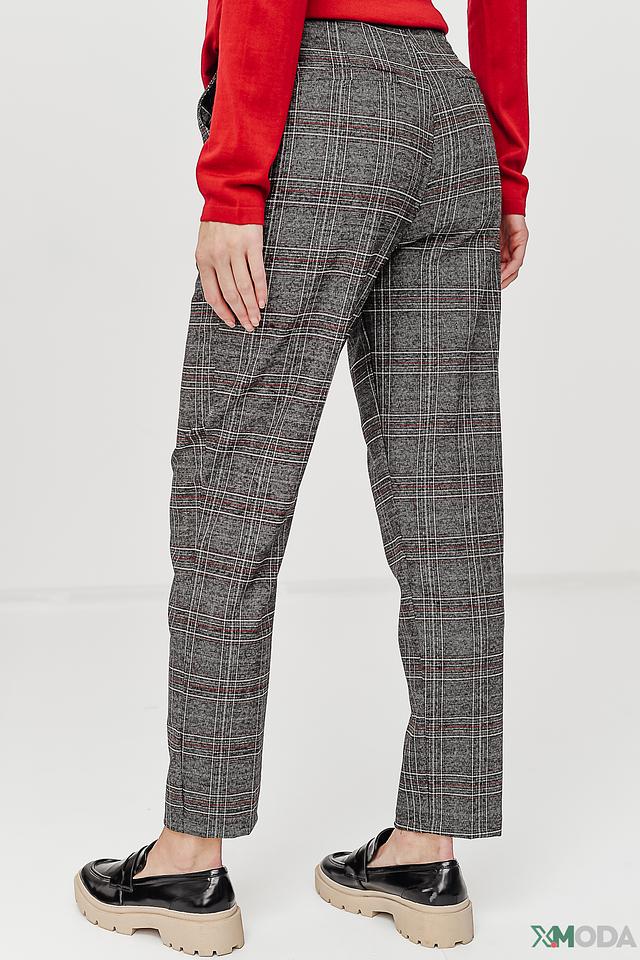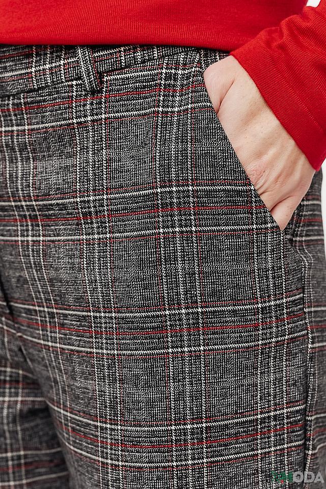Основной цвет брюк – серый, но благодаря оригинальному рисунку в клетку, сочетающему в себе серые, белые и красные оттенки, они выглядят стильно и интересно. Ткань, из которой изготовлены брюки, состоит из полиэстера, вискозы и эластана, что обеспечивает им мягкость, комфорт и хорошую износостойкость.