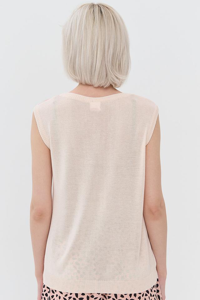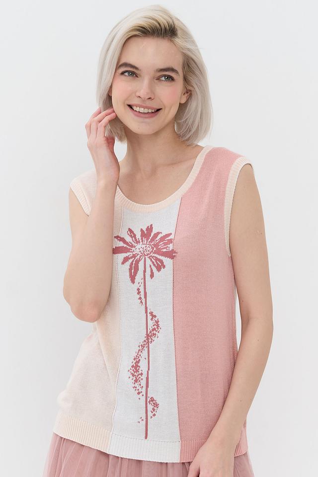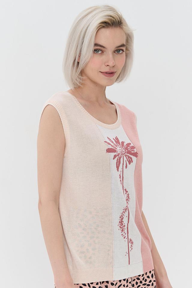 Женский жилет VAY бежевого и розового цвета украшен цветочным принтом. Модель выполнена из мягкого трикотажа, идеально подходит для создания лёгких и стильных образов. Состав: вискоза 50%, пан 50%