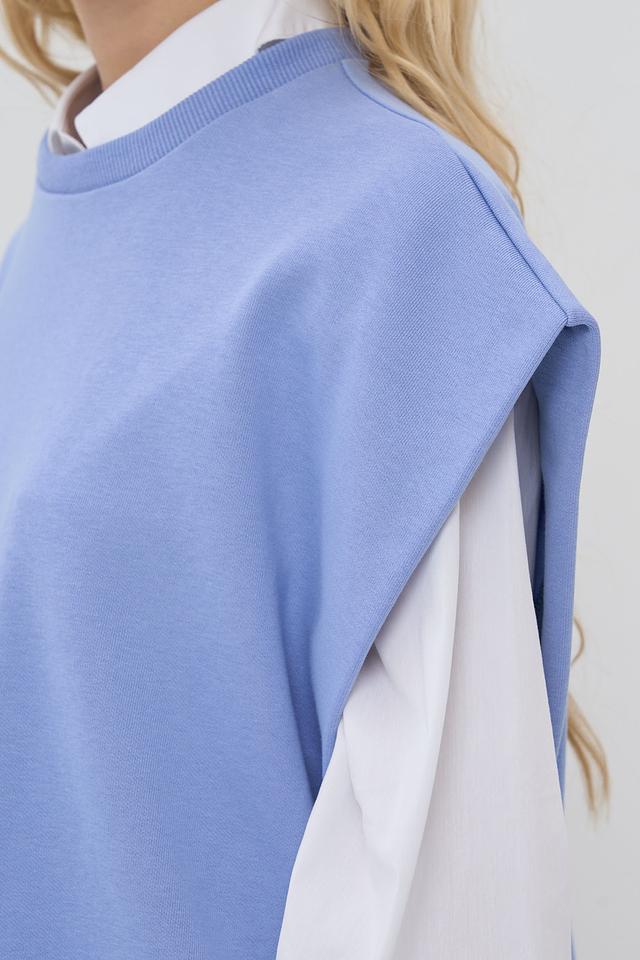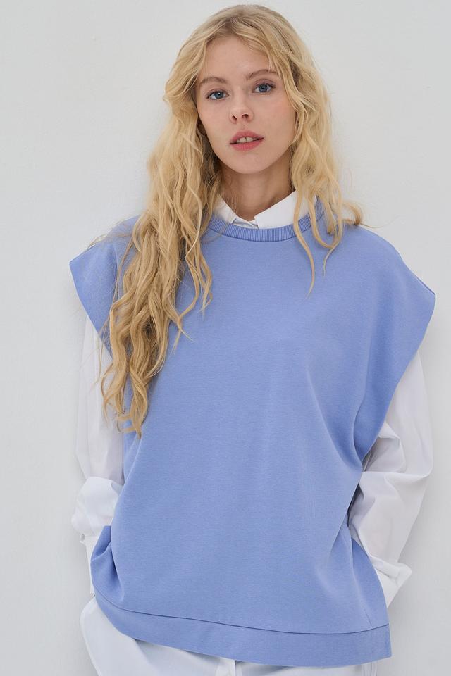 Голубой жилет от VAY — это стильная и универсальная вещь для создания многослойных образов. Выполнен из мягкого трикотажа, обеспечивающего комфорт в носке. Идеально сочетается с рубашками и брюками. Состав: хлопок 65%, полиэстер 35%