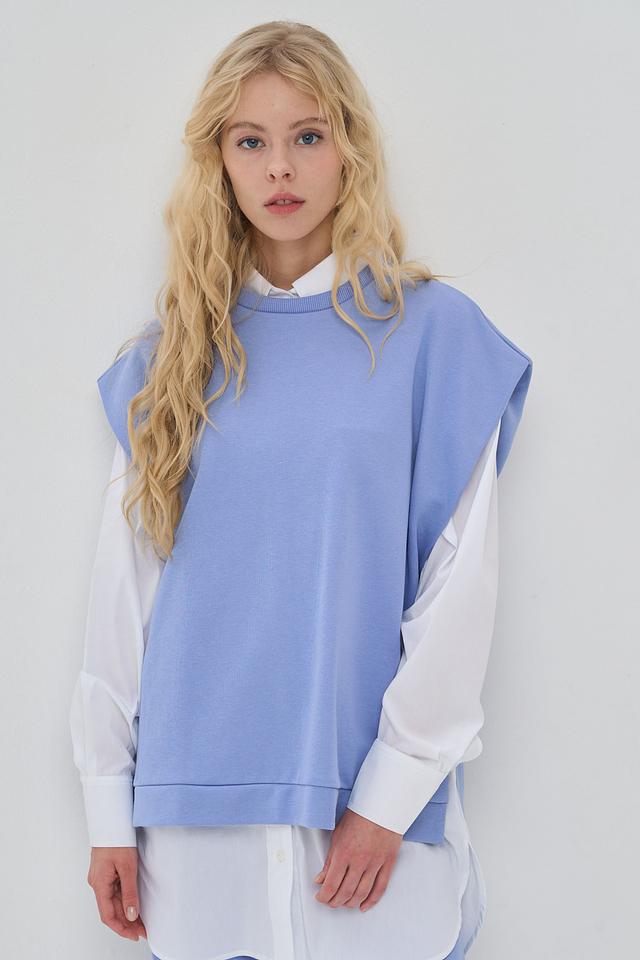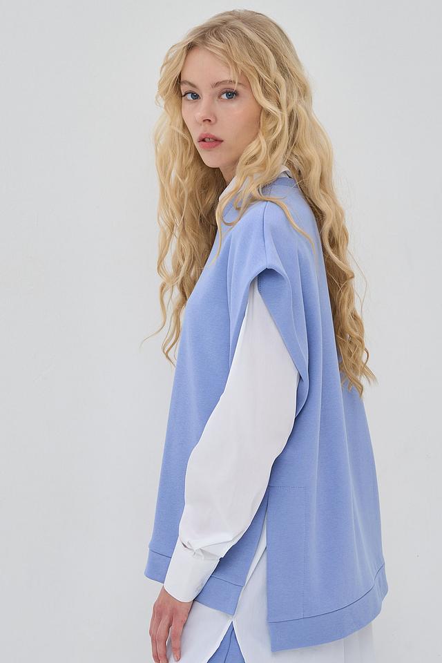 Этот жилет от VAY станет отличным дополнением к вашему гардеробу. Он выполнен в спокойном голубом цвете, который легко сочетается с различными элементами одежды.