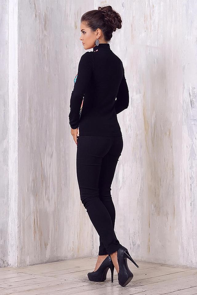 Блуза имеет удобный крой с длинными рукавами и высоким воротником-стойкой. Она выполнена из приятной к телу вискозы с небольшим добавлением эластана, благодаря чему хорошо тянется и не мнется.