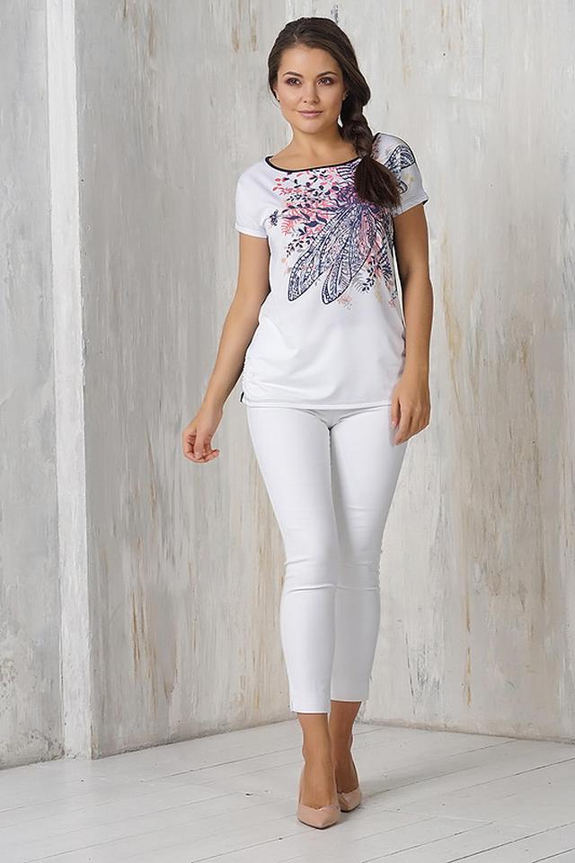 Белая блуза VAY с ярким цветочным принтом в виде перьев станет стильным дополнением к вашему гардеробу. Модель выполнена из мягкой вискозы с добавлением эластана, обеспечивая комфорт и свободу движений. Состав: вискоза 95%, эластан 5%