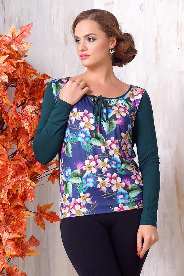 Эта стильная блуза от VAY сочетает в себе комфорт и актуальный дизайн. Основной цвет блузы – тёмно-зелёный, который гармонично сочетается с ярким цветочным принтом на передней части изделия.