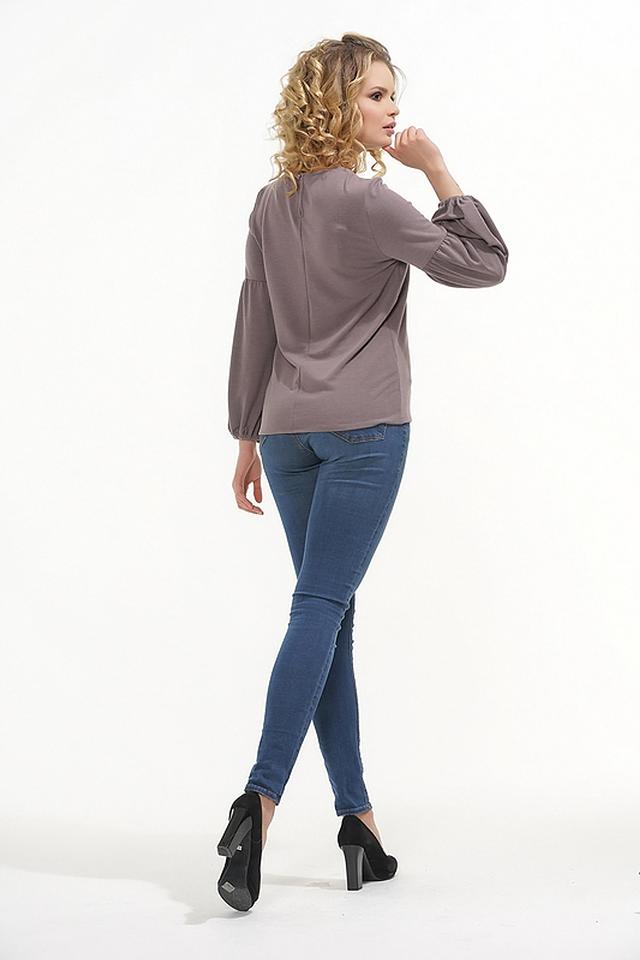 Особенностью данной блузы являются объёмные рукава-фонарики с манжетами, которые придают ей романтичный и женственный вид. Блуза выполнена из приятной к телу вискозы с небольшим добавлением эластана, что обеспечивает комфорт при носке и сохранение формы.