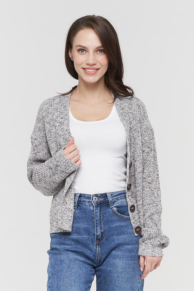 Этот кардиган от VAY станет отличным дополнением к вашему гардеробу. Он выполнен в сером меланже, что делает его универсальным и легко сочетаемым с различными вещами.