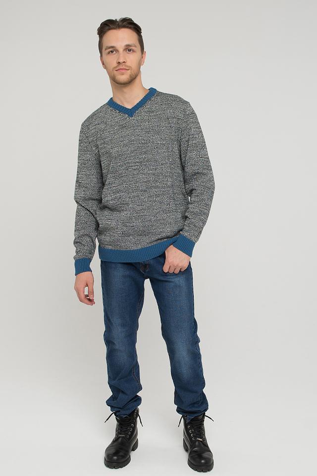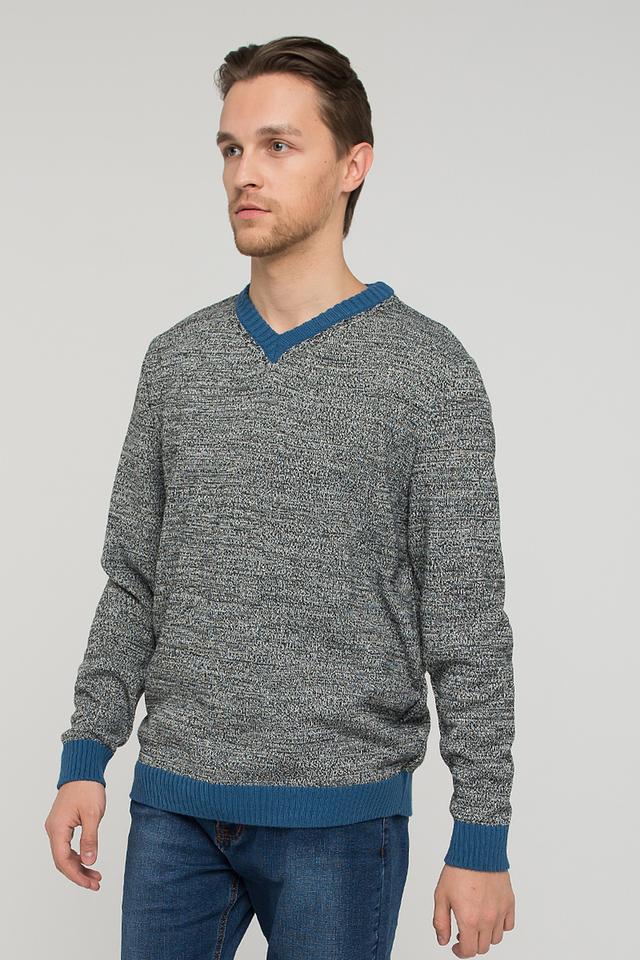 Мужской джемпер VAY серого цвета с V-образным вырезом и синими деталями. Изготовлен из сочетания шерсти и хлопка, обеспечивая комфорт и тепло. Отличный выбор для создания стильного повседневного образа. Состав: пан 70%, шерсть 30%