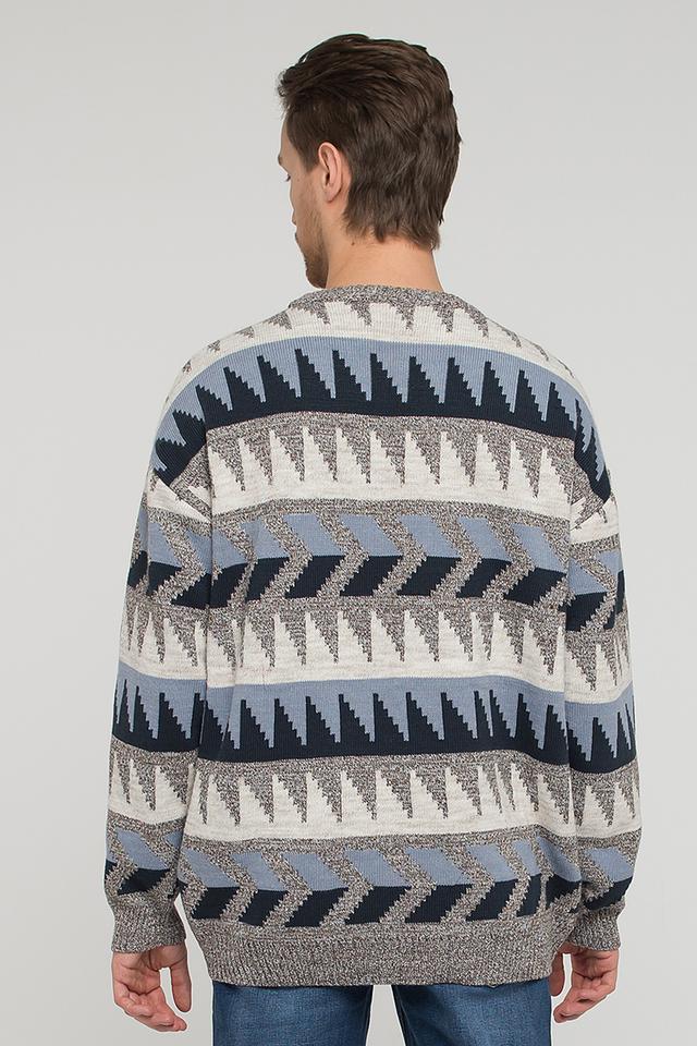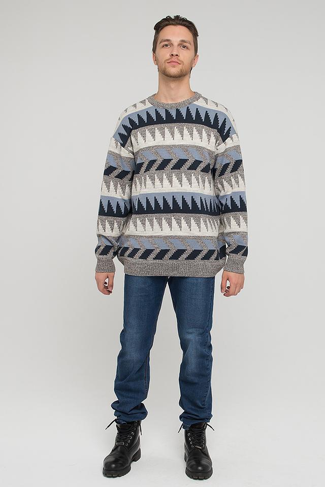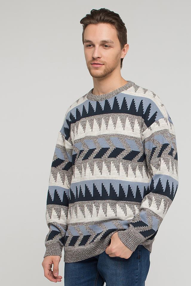 Представляем вашему вниманию стильный мужской джемпер от бренда VAY. Эта модель выполнена в сером цвете и украшена оригинальным геометрическим узором, сочетающим в себе оттенки синего и белого. Джемпер имеет классический крой с круглым вырезом горловины.