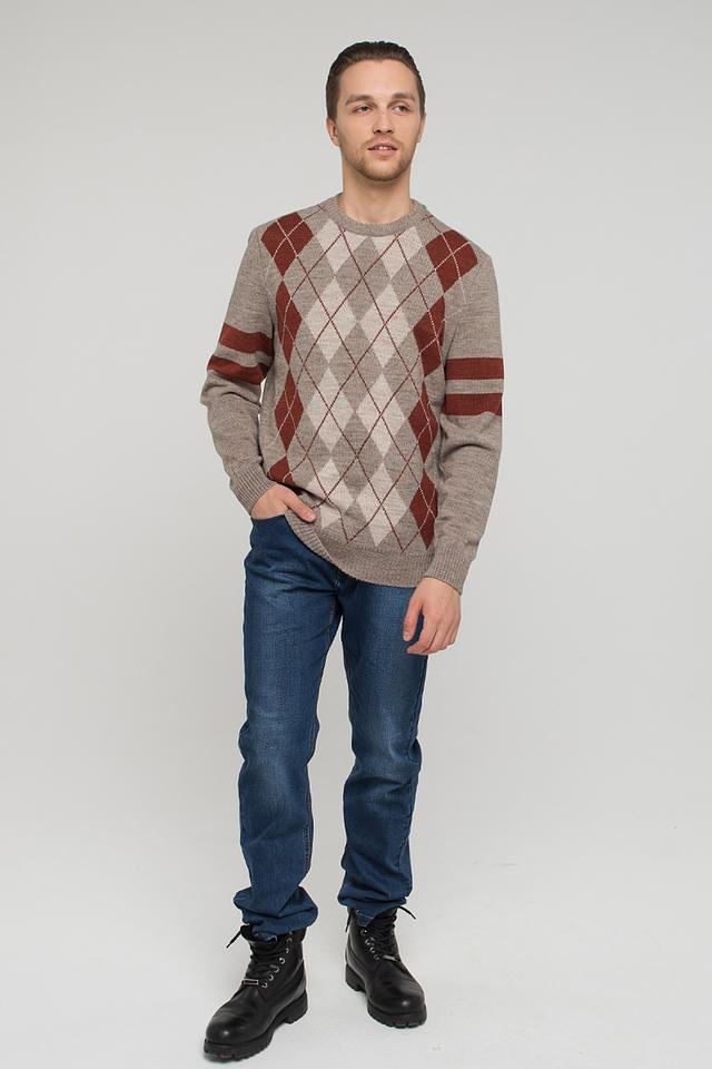 Этот мужской джемпер от VAY выполнен в спокойной серой цветовой гамме и украшен традиционным ромбовидным узором в коричнево-бежевых тонах. Модель имеет круглый вырез горловины и длинные рукава.
