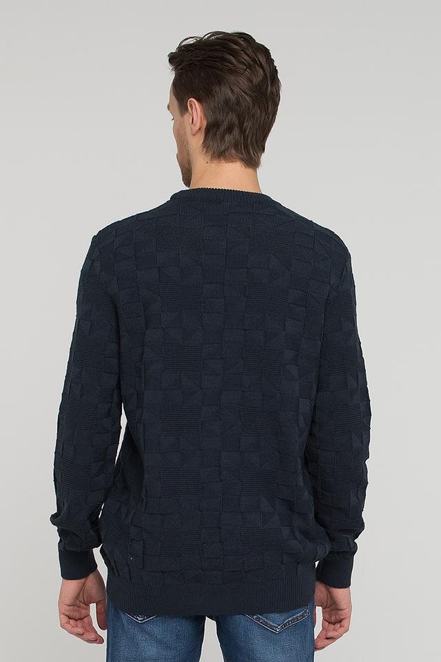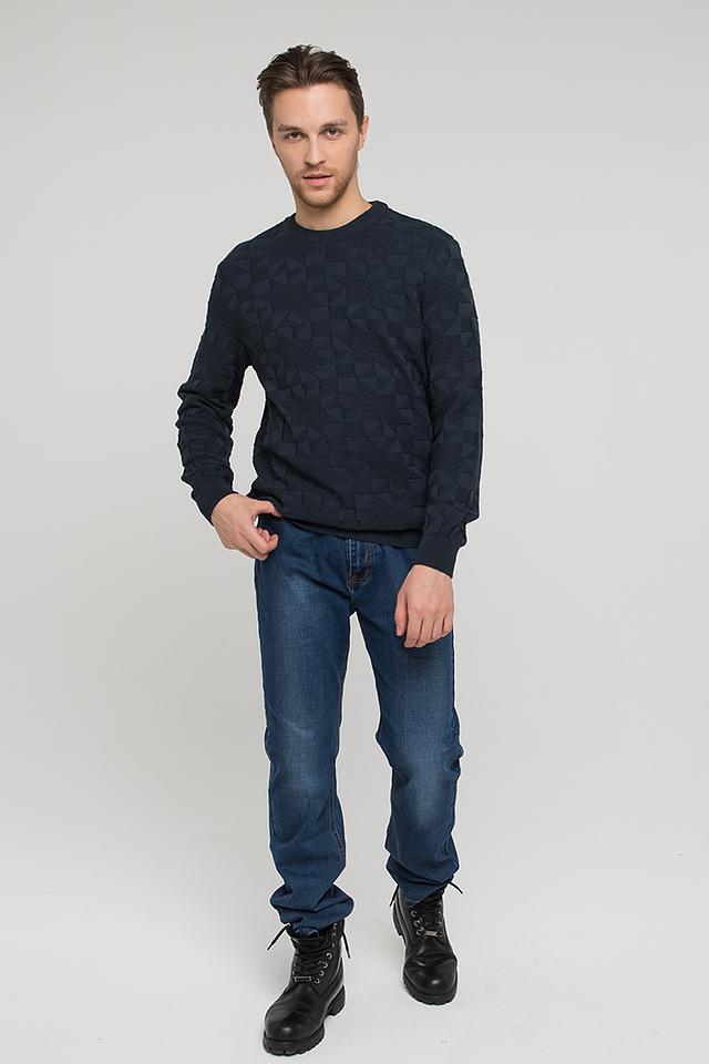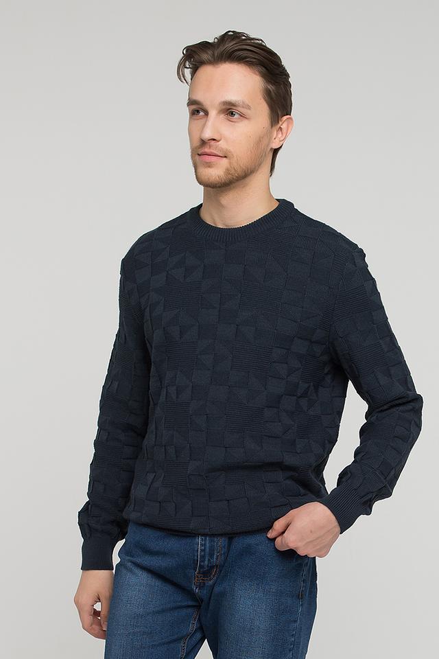 Мужской джемпер VAY тёмно-синего цвета с геометрическим узором. Изготовлен из сочетания хлопка и шерсти, обеспечивая комфорт и тепло. Классический крой и стильный дизайн делают его универсальным элементом гардероба. Состав: пан 70%, шерсть 30%