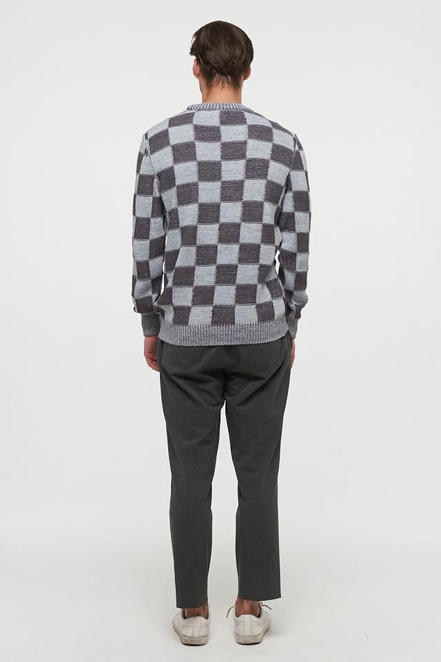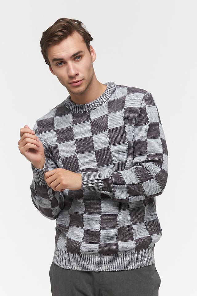 Мужской джемпер от VAY выполнен в классическом крое с круглым вырезом горловины. Основной цвет изделия – серый, дополненный контрастным узором в виде клетки, сочетающим различные оттенки серого.