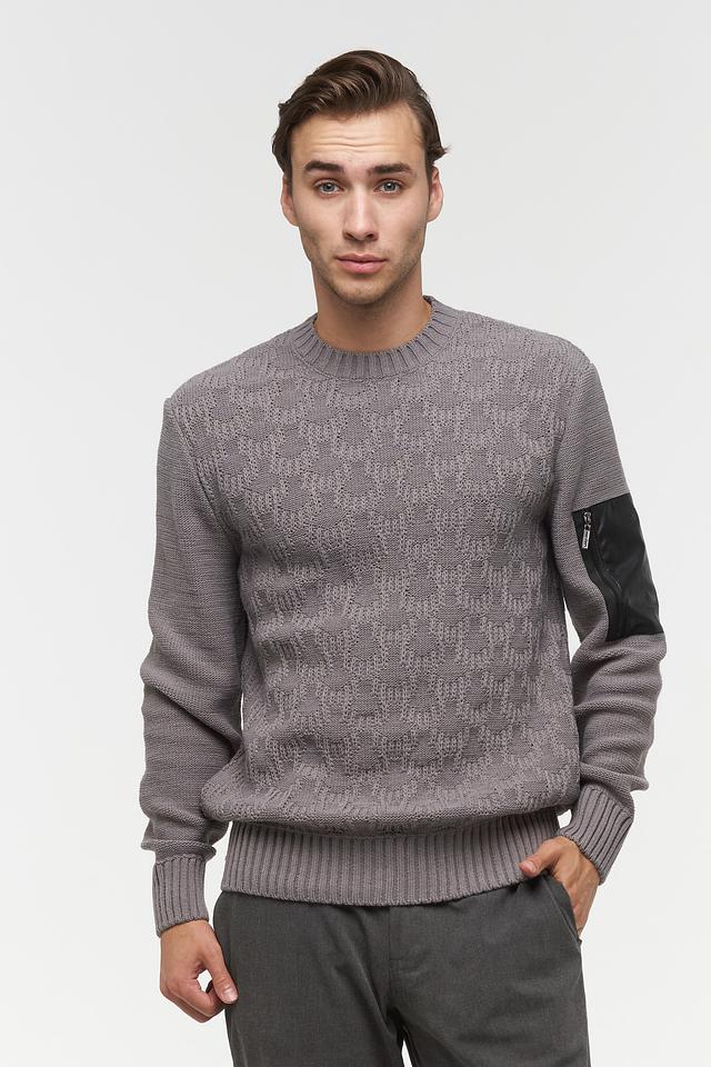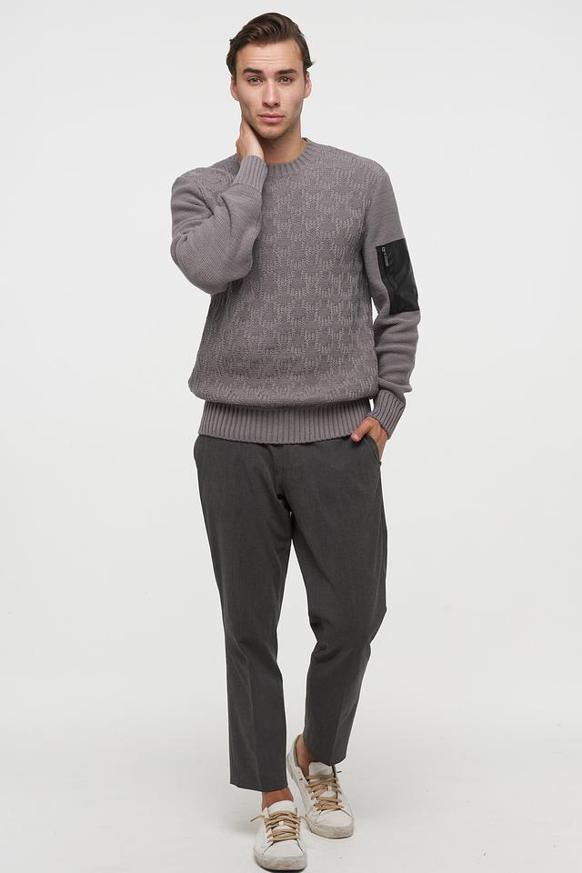 Мужской джемпер VAY серого цвета с оригинальной текстурой и вставкой на рукаве. Изготовлен из сочетания шерсти и хлопка, обеспечивая комфорт и тепло. Стильное и практичное решение для повседневного гардероба. Состав: пан 70%, шерсть 30%