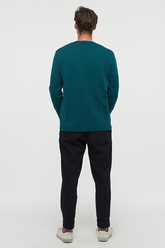 Мужской пуловер от VAY выполнен в насыщенном изумрудном цвете. Модель имеет классический крой с V-образным вырезом, который подчеркивает линию шеи и делает образ более элегантным.