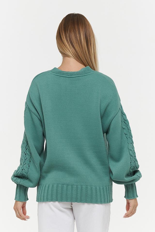 Зелёный кардиган VAY из мягкого вязаного полотна станет уютным дополнением к вашему гардеробу. Модель с V-образным вырезом и рукавами-фонариками подчеркнет ваш стиль и женственность. Состав: пан 70%, шерсть 30%