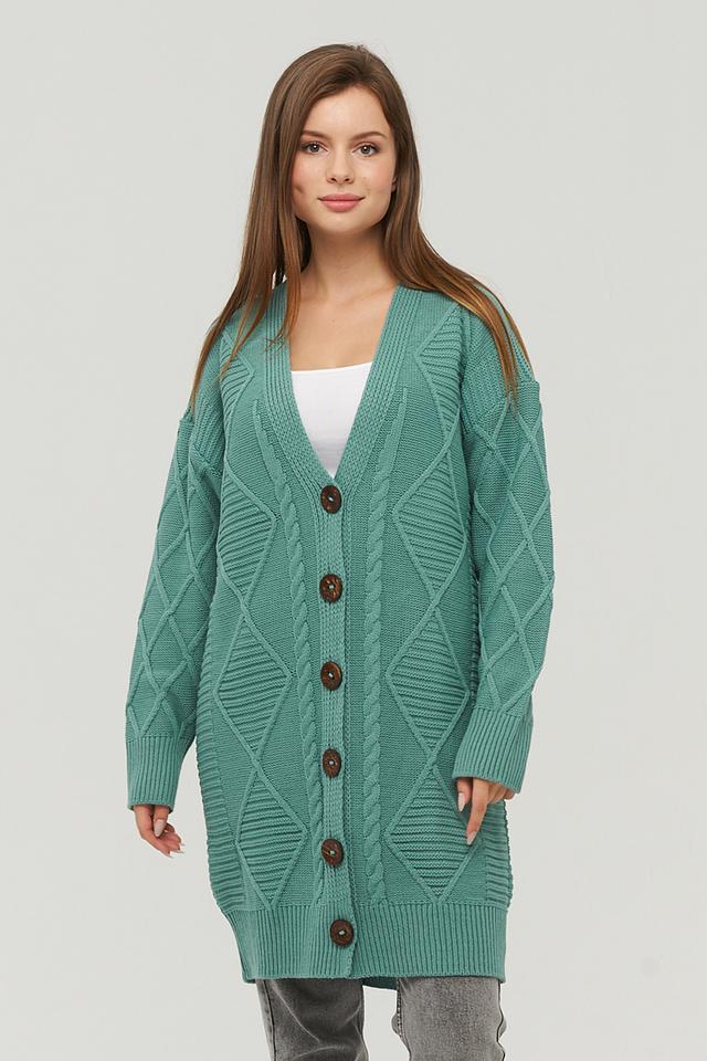 Изумрудный кардиган VAY – это стильный и уютный выбор для прохладной погоды. Модель выполнена из мягкого трикотажа с выразительным узором "косы" и застегивается на пуговицы. Состав: пан 70%, шерсть 30%