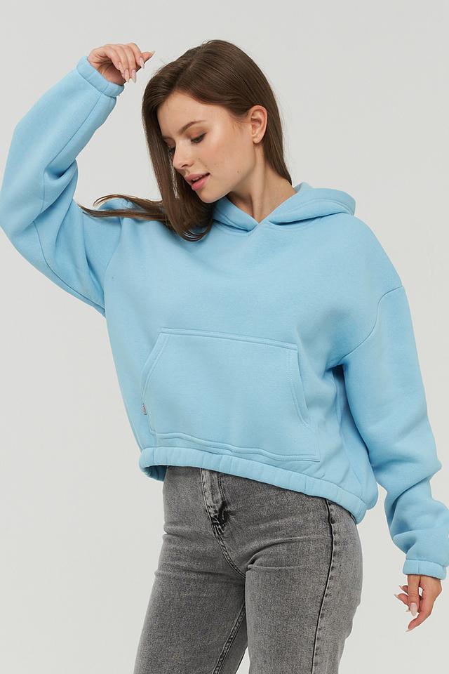 Женская толстовка VAY голубого цвета – это комфорт и стиль в одном изделии. Модель оверсайз кроя с капюшоном и накладным карманом идеально подходит для создания повседневных образов. Состав: хлопок 95%, эластан 5%