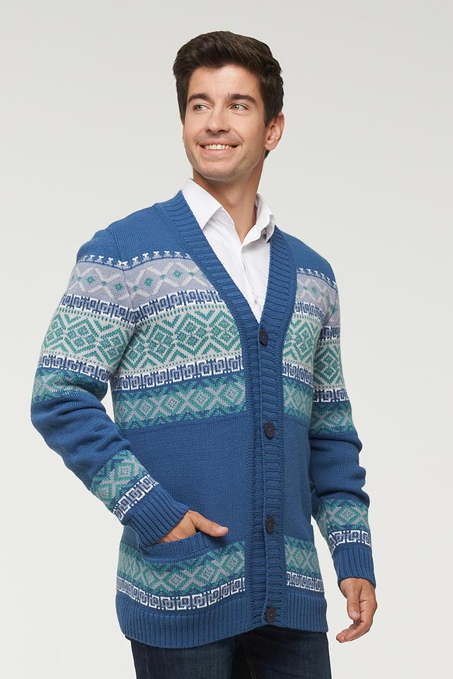 Кардиган VAY мужской с узором синийКардиган VAY мужской с узором синийКардиган VAY мужской с узором синий