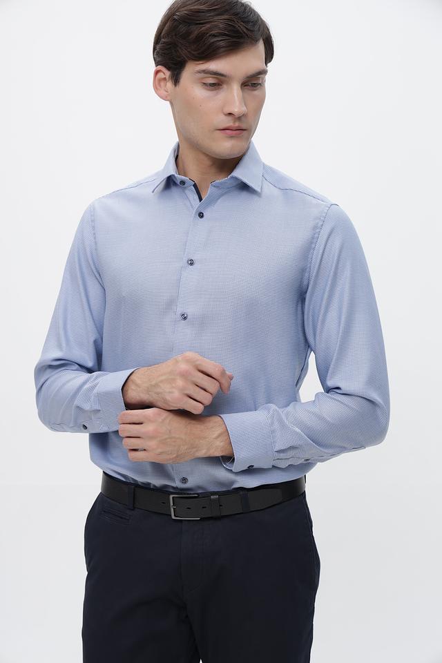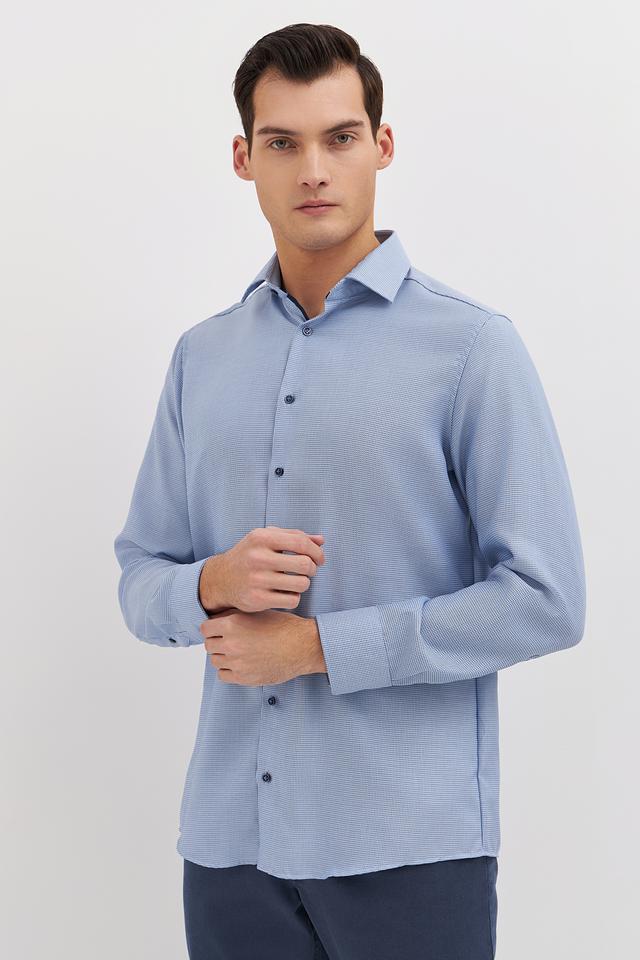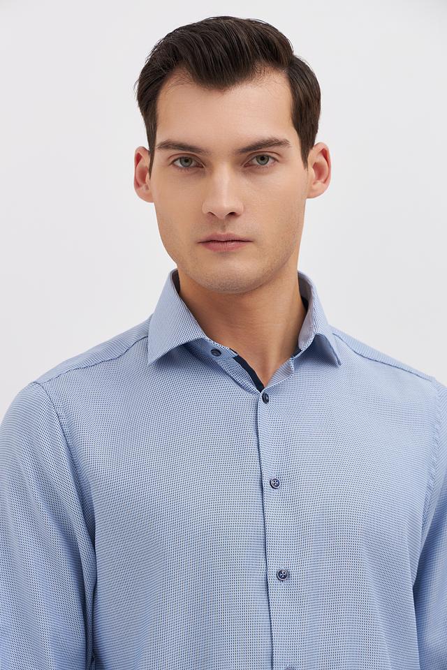 Мужская рубашка Venti голубого цвета с мелким геометрическим рисунком. Изготовлена из 100% хлопка, обеспечивающего комфорт и воздухопроницаемость. Состав: хлопок 100%