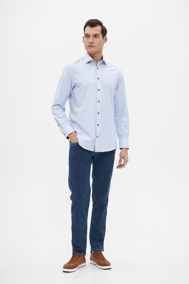 Мужская рубашка Venti голубого цвета с длинным рукавом, выполнена из хлопка с добавлением эластана для комфорта. Классический крой и приталенный силуэт делают эту рубашку универсальным выбором для любого случая. Состав: хлопок 90%, эластан 10%