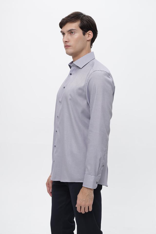 Особенностью данной модели является мелкий геометрический принт, который придает рубашке стильный и современный вид. Рубашка идеально подойдет для создания как деловых, так и повседневных образов. Она хорошо сочетается с брюками, джинсами и пиджаками.