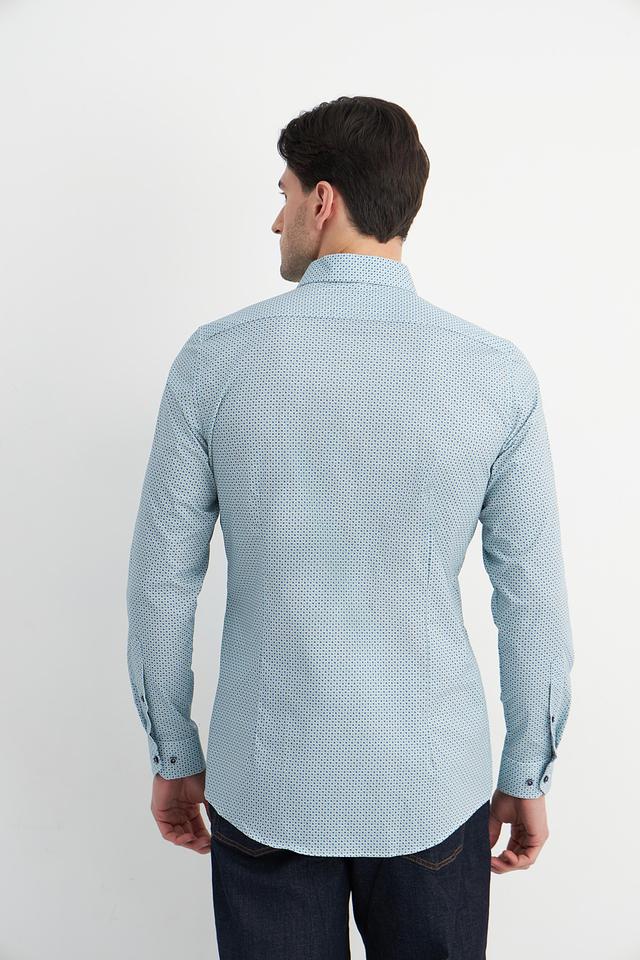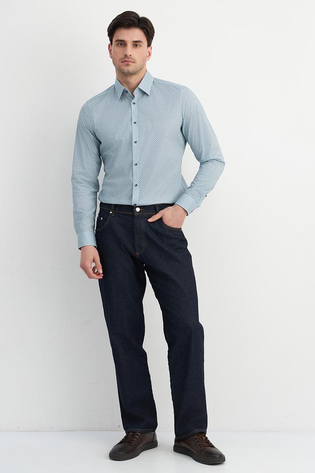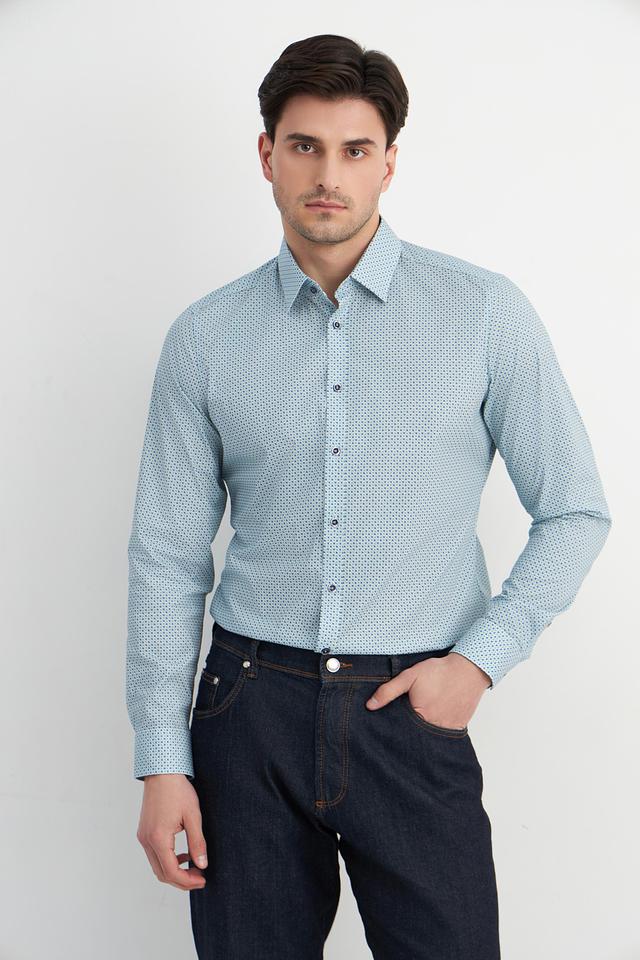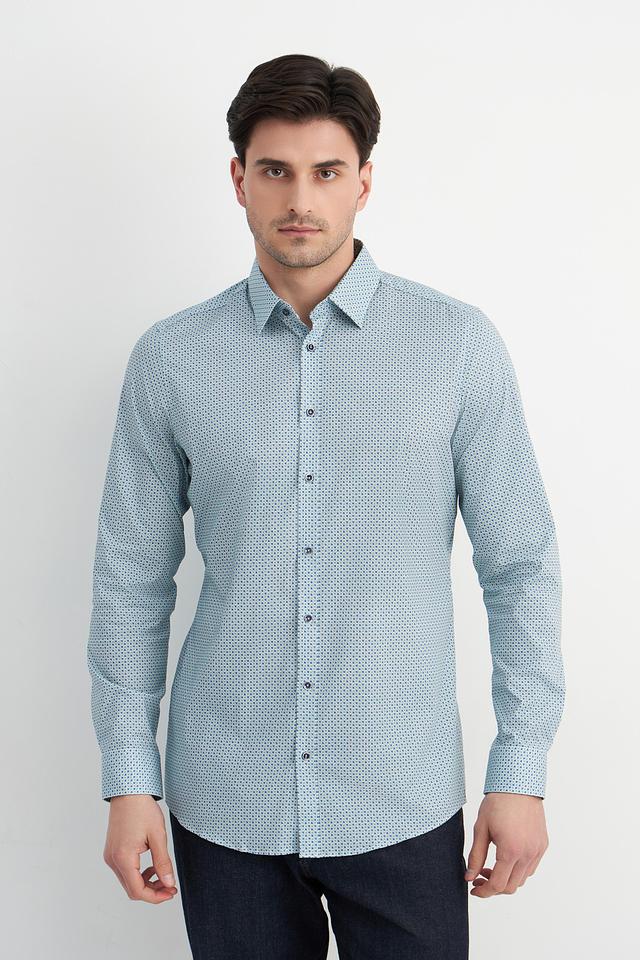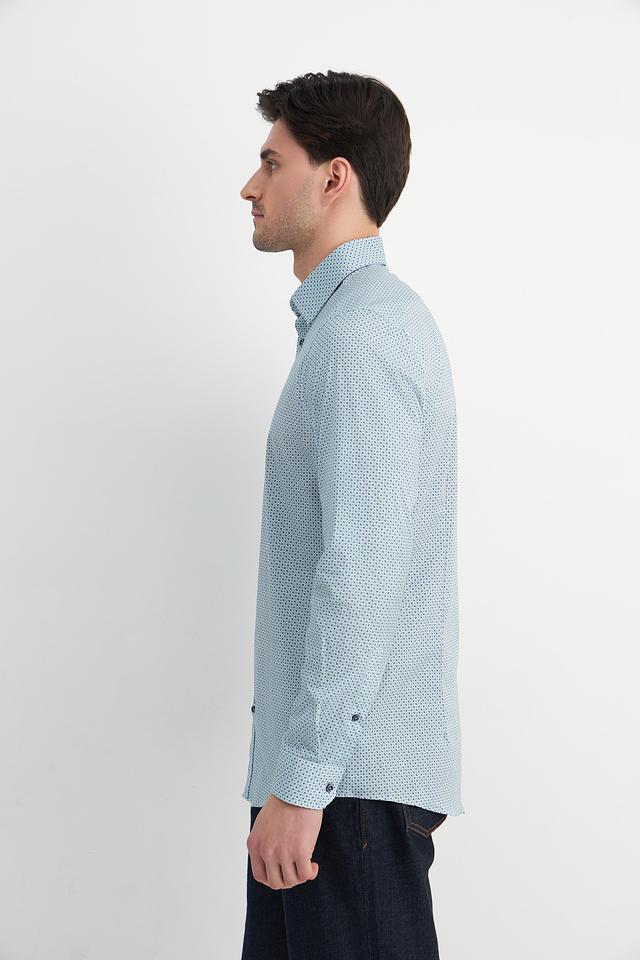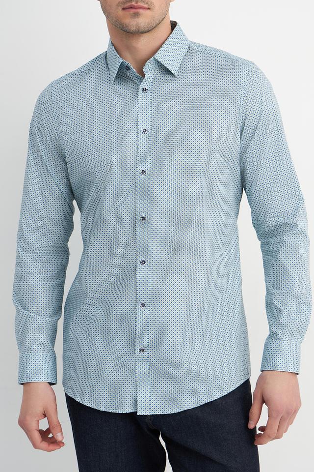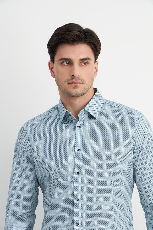 Мужская рубашка Venti голубого цвета с мелким геометрическим принтом. Классический крой и сочетание хлопка с эластаном обеспечивают комфорт и удобство в носке. Состав: хлопок 97%, эластан 3%