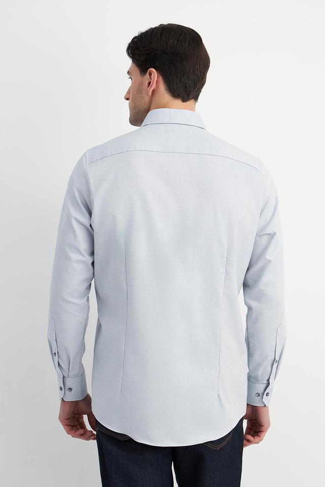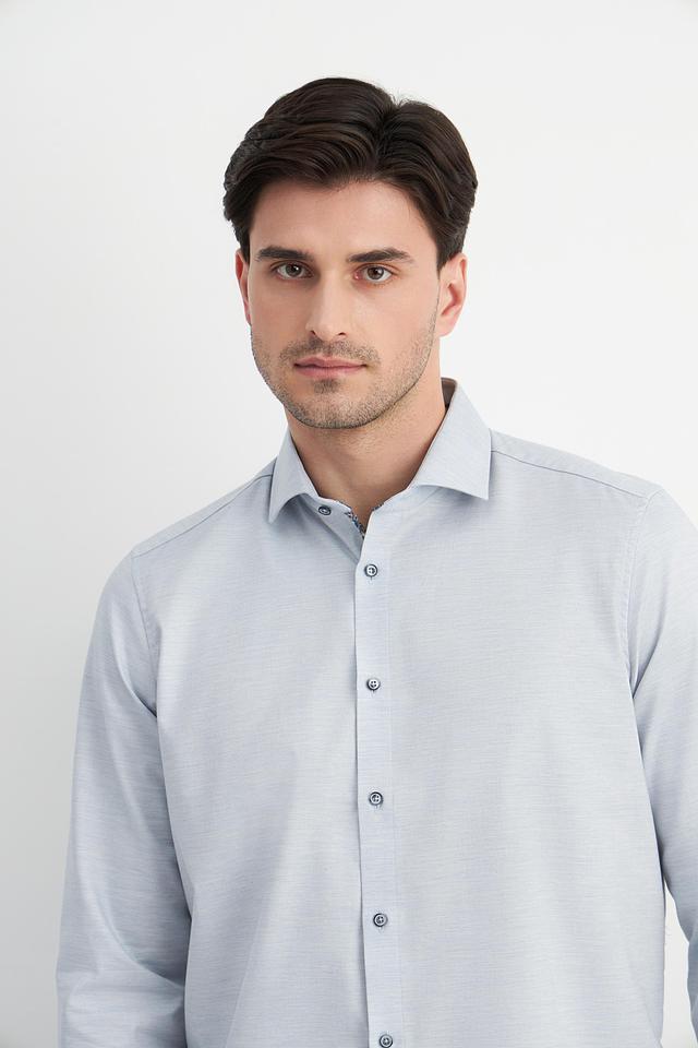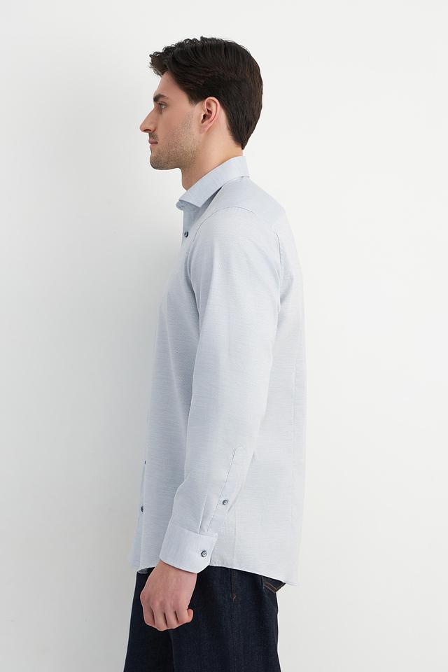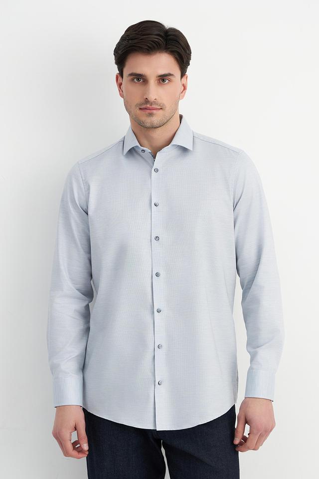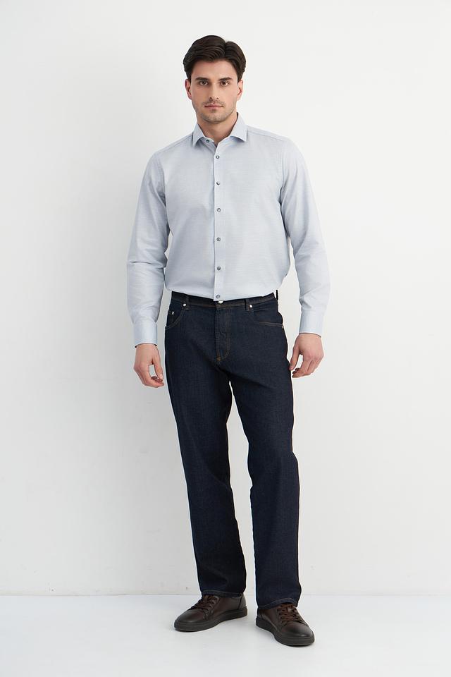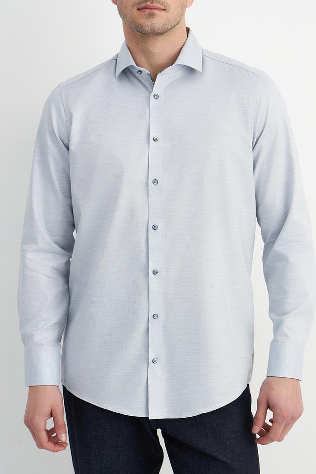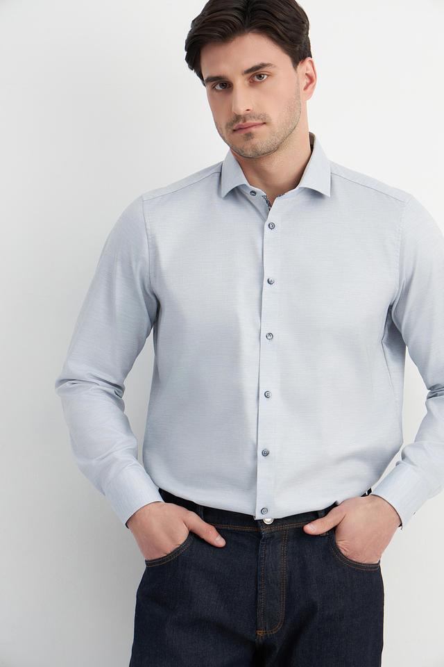 Рубашка имеет застежку на пуговицы по всей длине. Текстура ткани – мелкий рисунок, который придает рубашке изысканность. Эта модель станет отличным выбором для тех, кто ценит качество и стиль.