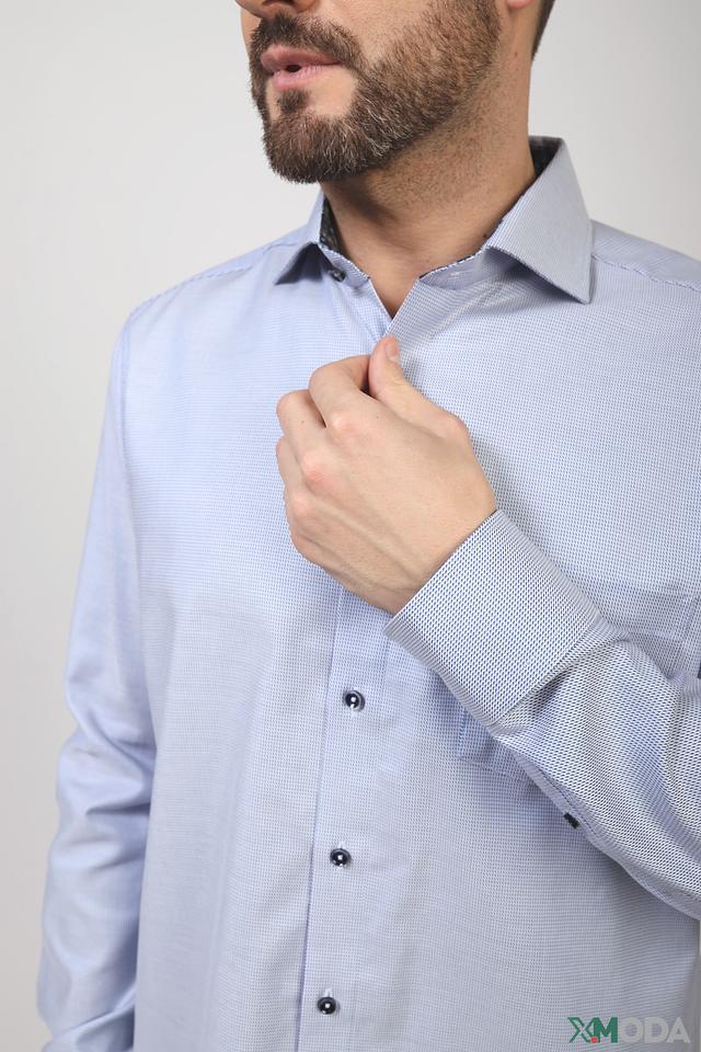 Эта рубашка от Venti Casa Moda – идеальный выбор для создания стильного и элегантного образа. Выполнена в приятном голубом цвете с мелким геометрическим рисунком, который придает ей особую изысканность.
