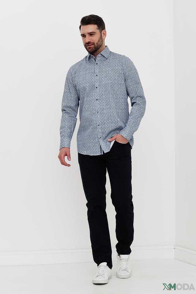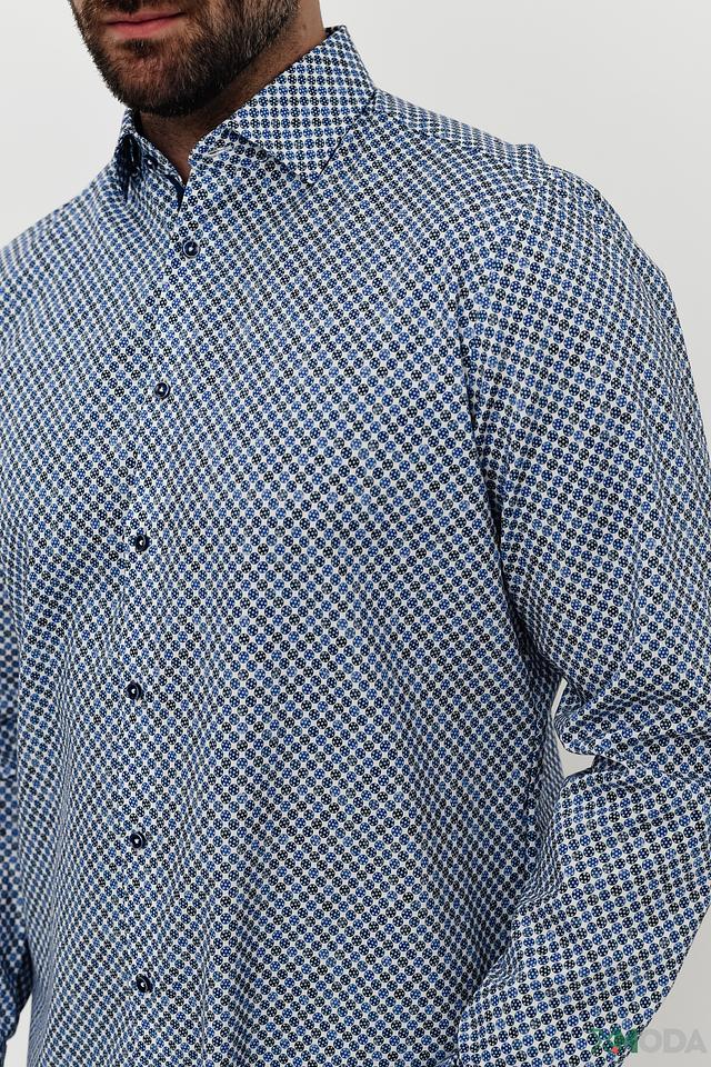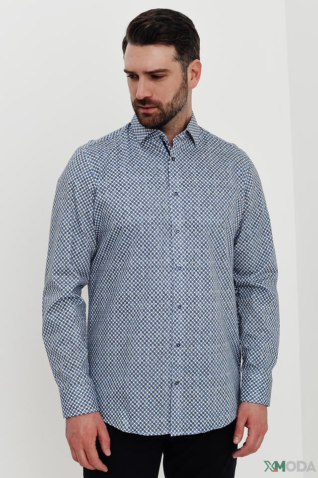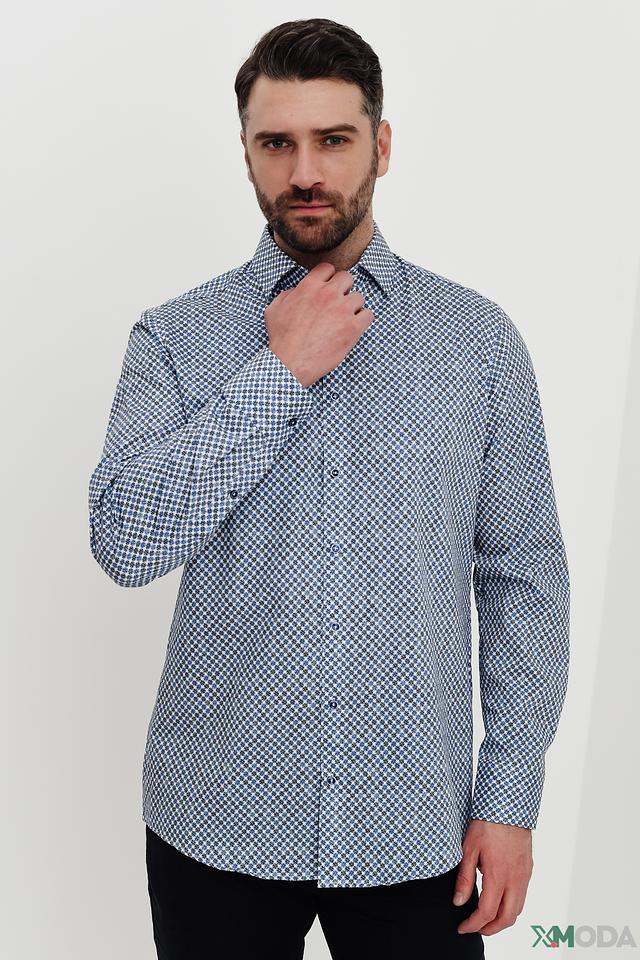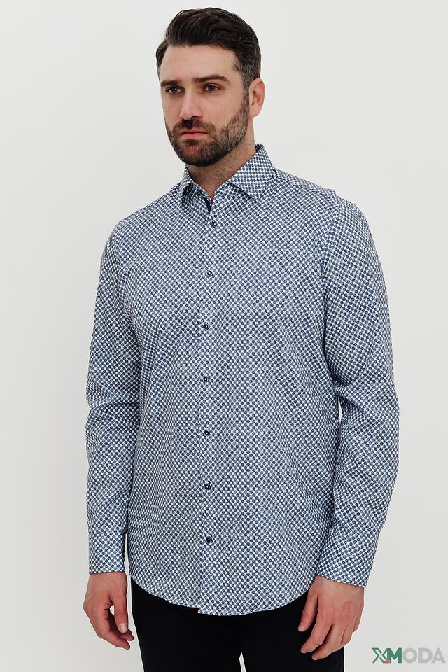 Мужская рубашка Venti голубого цвета с геометрическим принтом в клетку. Классический крой и 100% хлопковый состав обеспечивают комфорт и удобство в носке. Идеальный выбор для создания стильного повседневного образа. Состав: хлопок 100%